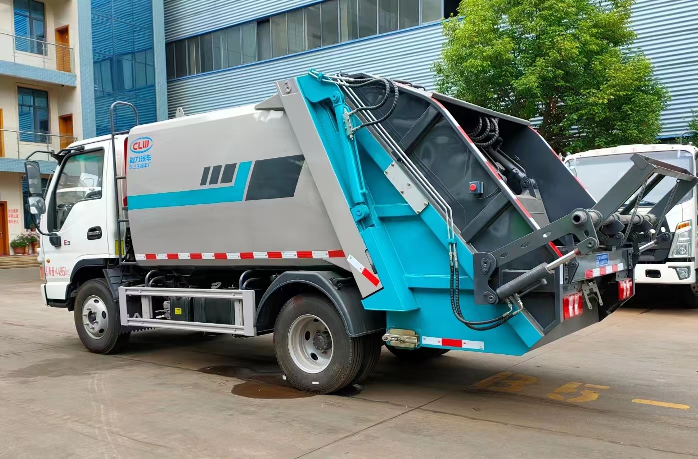 上裝配置 箱體5.8方容積,優(yōu)質(zhì)高強度板材制作,圓弧形箱體結(jié)構(gòu),外置滑板油缸,箱體厚度邊3底4,帶尾部側(cè)部雙污水箱,光電感應,博利油缸,英國DLI密封圈,威森博樂多路閥,安徽皖液油泵,CAN/PLC操作模式,帶駕駛室操作,標配無線遙控器,標配壓實閥,增加裝載量。