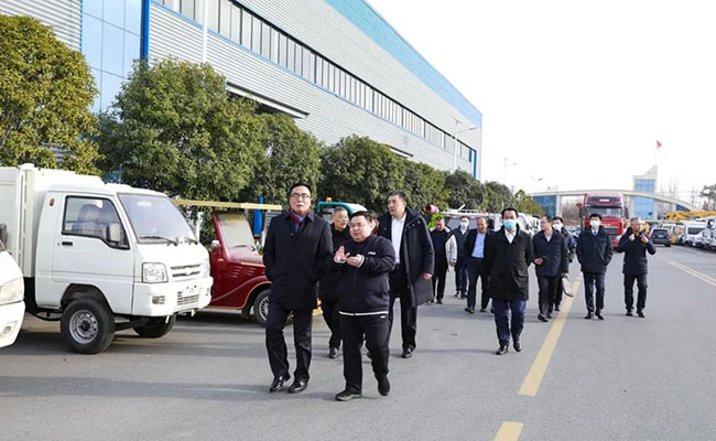 王志才總經(jīng)理一行領(lǐng)導(dǎo)及負責(zé)人,不畏凜冬寒冷,先后步行參觀程力(曾都)汽車工業(yè)園、程力南郊汽車裝備制造工業(yè)園兩大基地。來賓們看產(chǎn)品、下車間、問工藝,無一不細致入微,調(diào)研考察工作扎實認真高效。