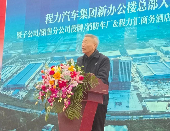 在程力集團(tuán)新廠辦公大樓總部入駐慶典會上,集團(tuán)總經(jīng)理程阿羅為程力消防車公司總經(jīng)理汪東洋,舉行了消防器材廠開業(yè)授牌儀式,汪東洋總經(jīng)理作了表態(tài)和發(fā)言。